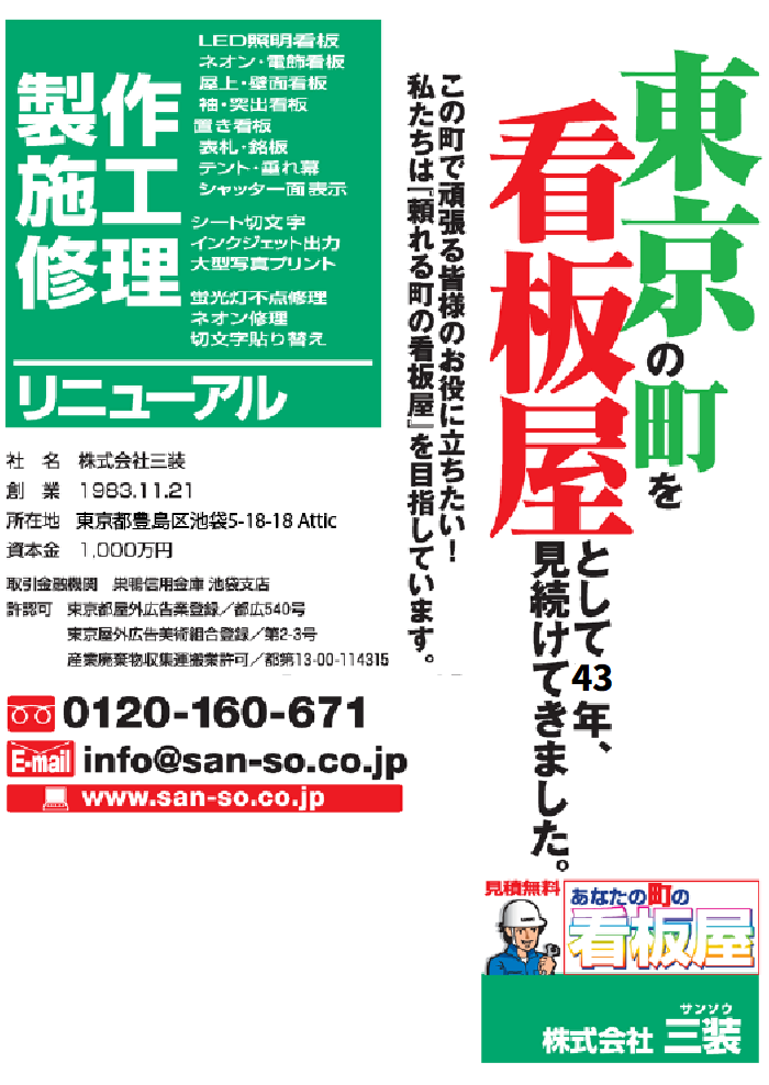 東京豊島区の看板屋として、看板の製作・施工・修理から、他社が製作した看板のリニューアルまで行います!